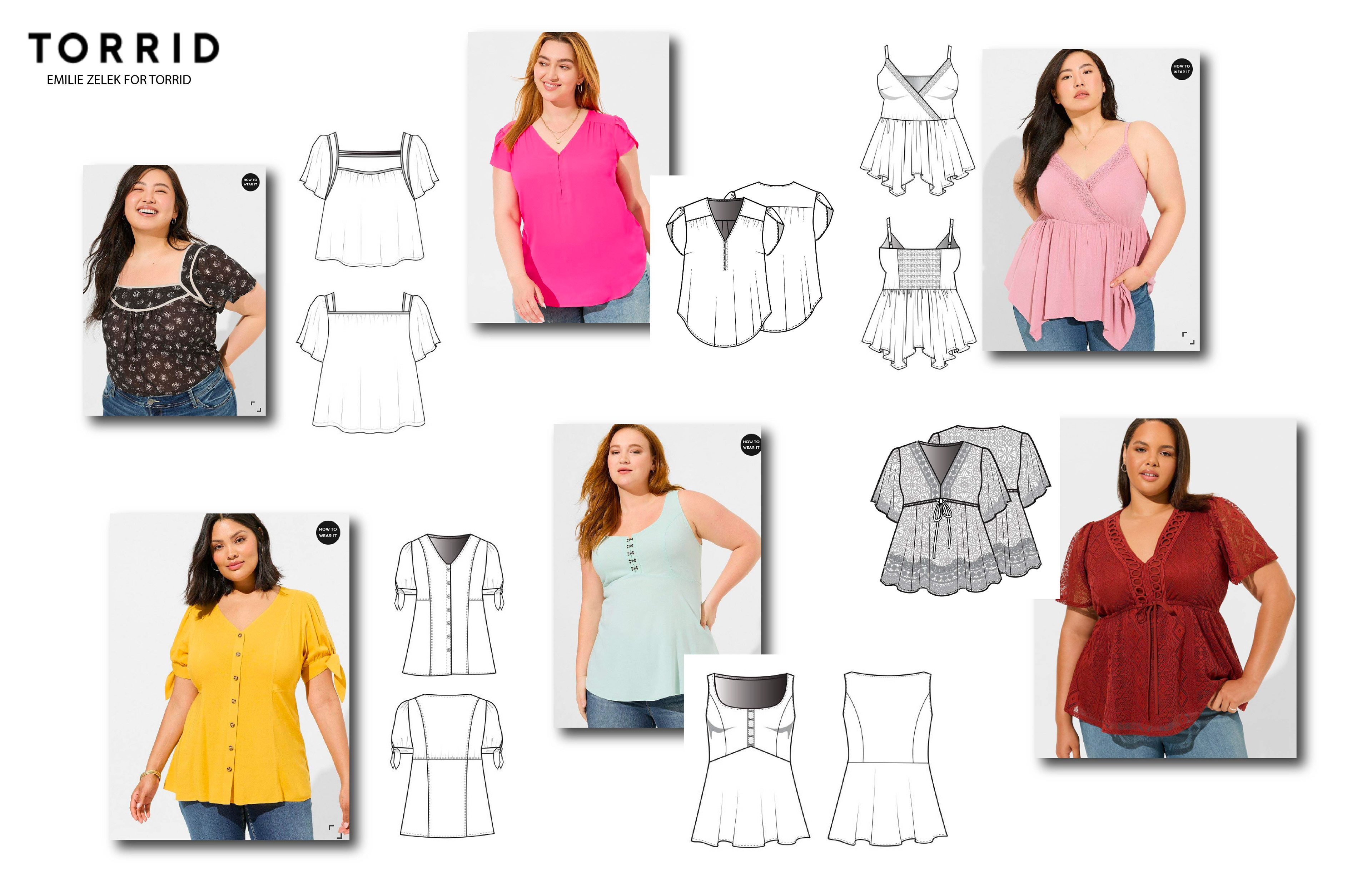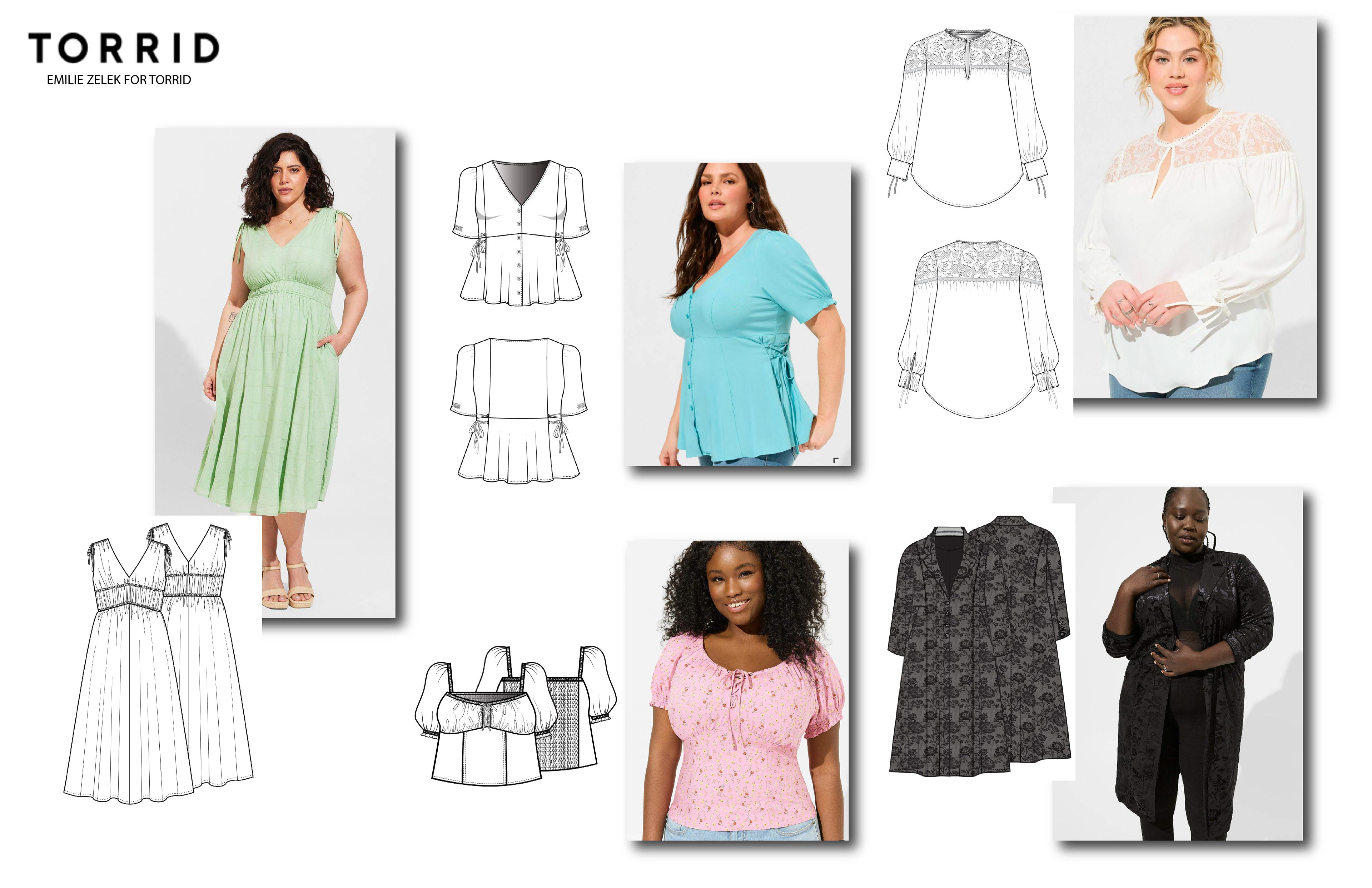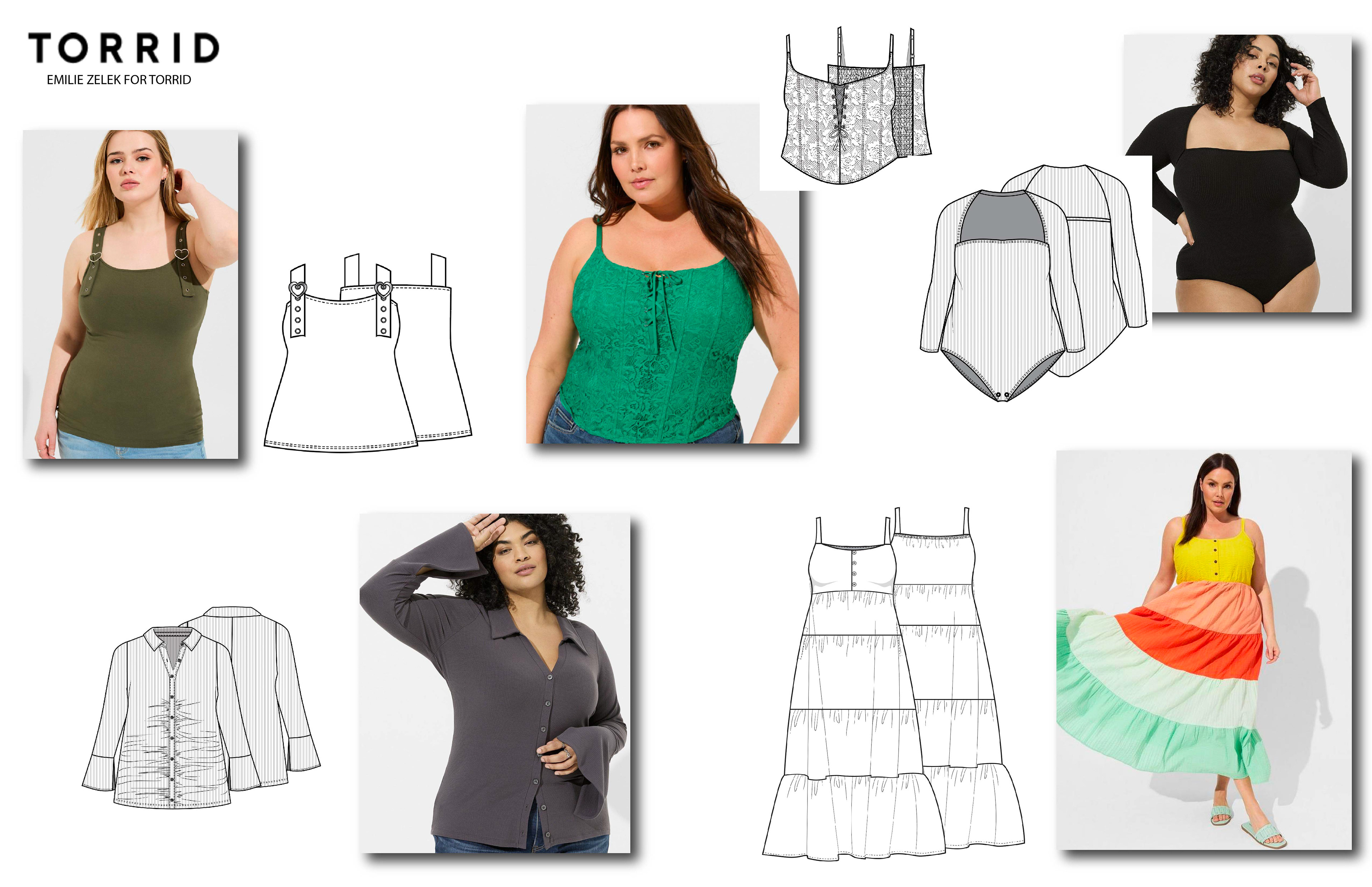 Below are sketches I have done for Torrid along side product shots.
